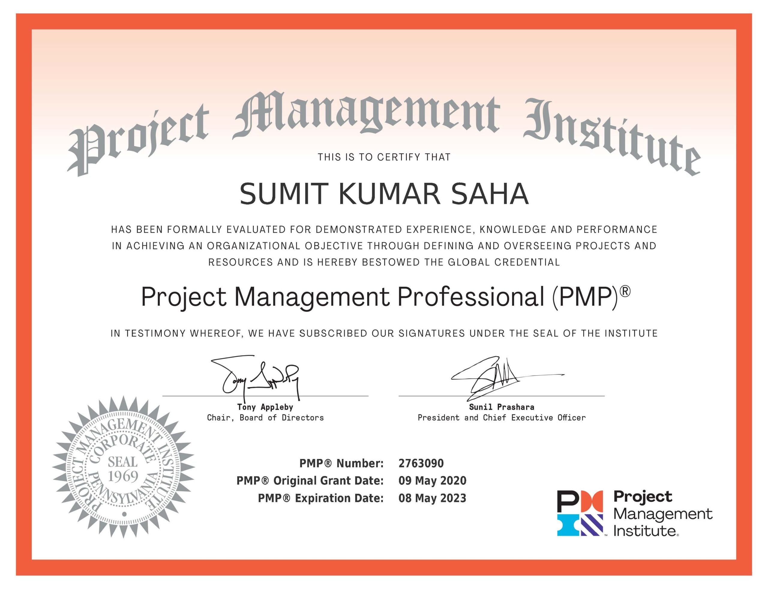 - Certified Project Management Professional (PMP), PMI ID: 2763090