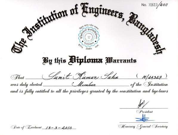 - Fellow member of Institution of Engineers, Bangladesh (IEB)